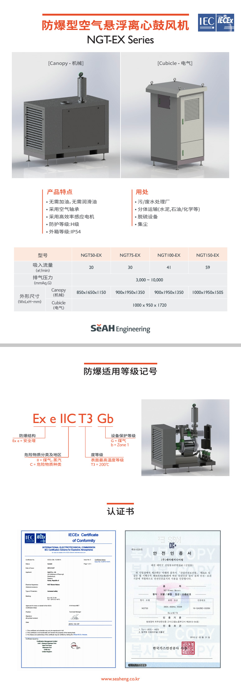 防爆型空氣懸浮離心風(fēng)機(jī)是由我公司代理的韓國(guó)SeAH壓縮機(jī)株式會(huì)社的產(chǎn)品。SeAH集團(tuán)成立于1960年,旗下?lián)碛?8家子公司,2014年,集團(tuán)銷售額就達(dá)到900多億美元。SeAH壓縮機(jī)株式會(huì)社是SeAH集團(tuán)的子公司,成立于1987年,專業(yè)生產(chǎn)離心式壓縮機(jī)和風(fēng)機(jī),我公司代理的空氣懸浮離心風(fēng)機(jī)產(chǎn)品,設(shè)計(jì)先進(jìn),技術(shù)穩(wěn)定可靠。