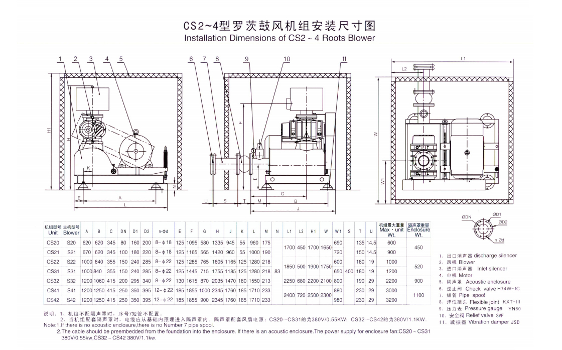 | S系列羅茨鼓風(fēng)機(jī)性能表 Performance Table of Series S Roots Blowers | ||||||||||||||||||||||||||||||